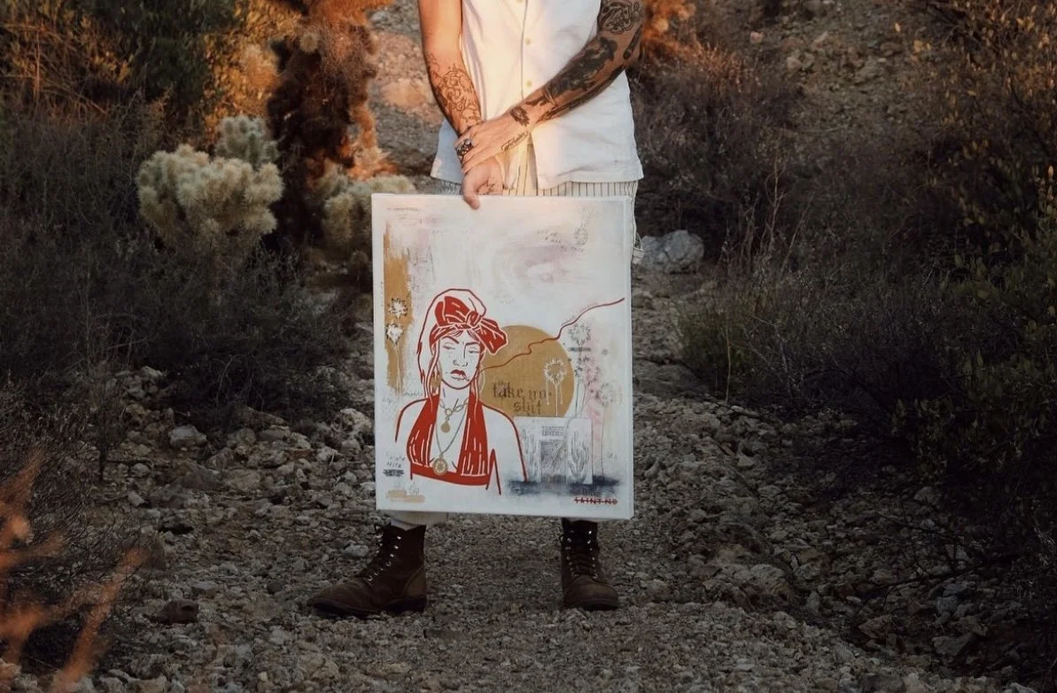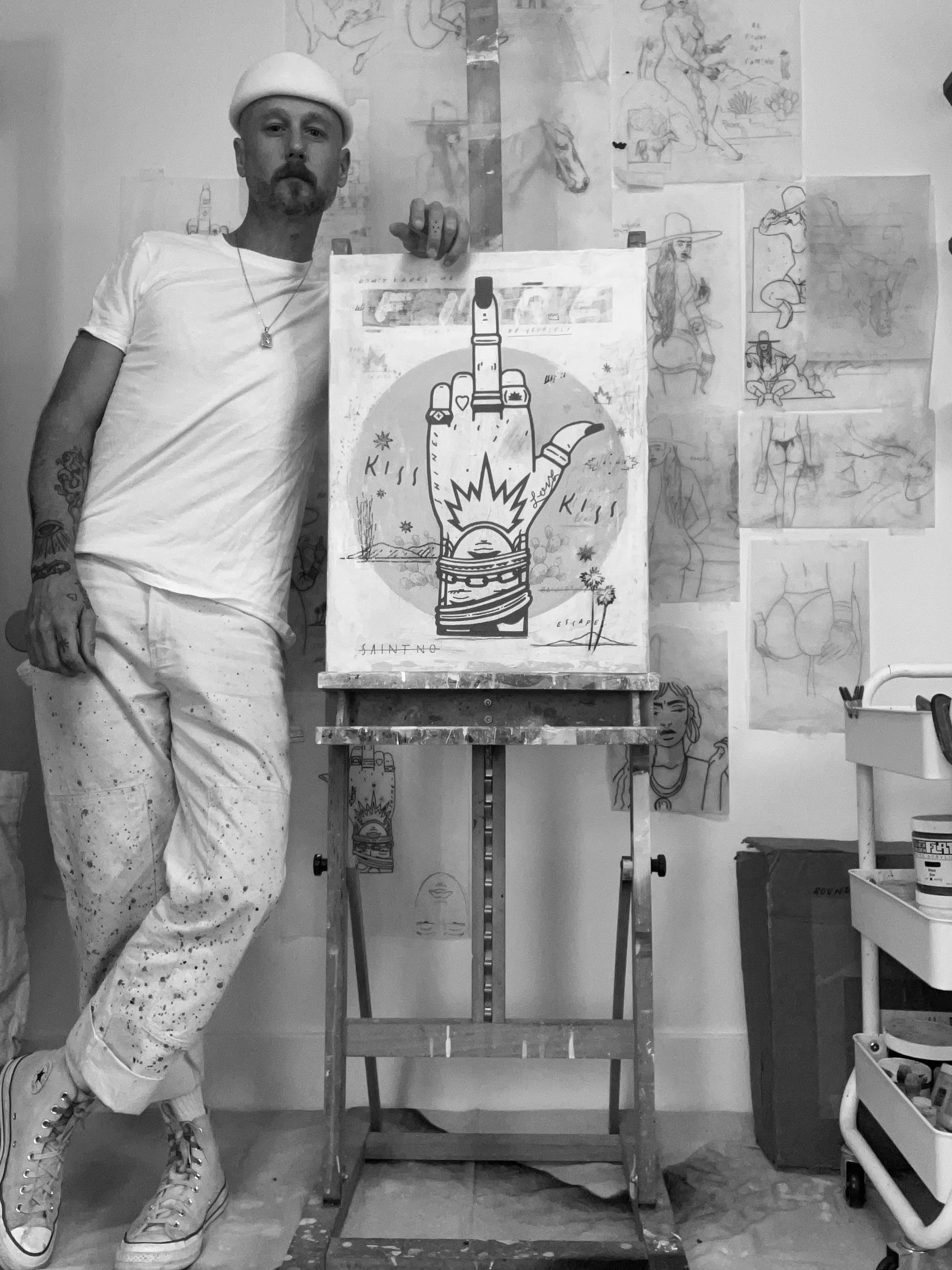 Saint No’s work explores themes of strength, individuality, and the enduring mystique of the desolate West. With a contemporary edge and a fearless approach, the art celebrates unapologetic characters who embody resilience, sensuality, and defiance. Drawing inspiration from the rugged landscapes and mythology of the American desert, the work merges surrealist elements with raw emotion, creating imagery that is as timeless as it is provocative.Through bold compositions and a striking palette, Saint No crafts pieces that invite viewers to confront their own ideas of power, freedom, and self-expression. Each work is a statement—a declaration of presence and agency that embodies strength, beauty, and authenticity in their most unfiltered forms.