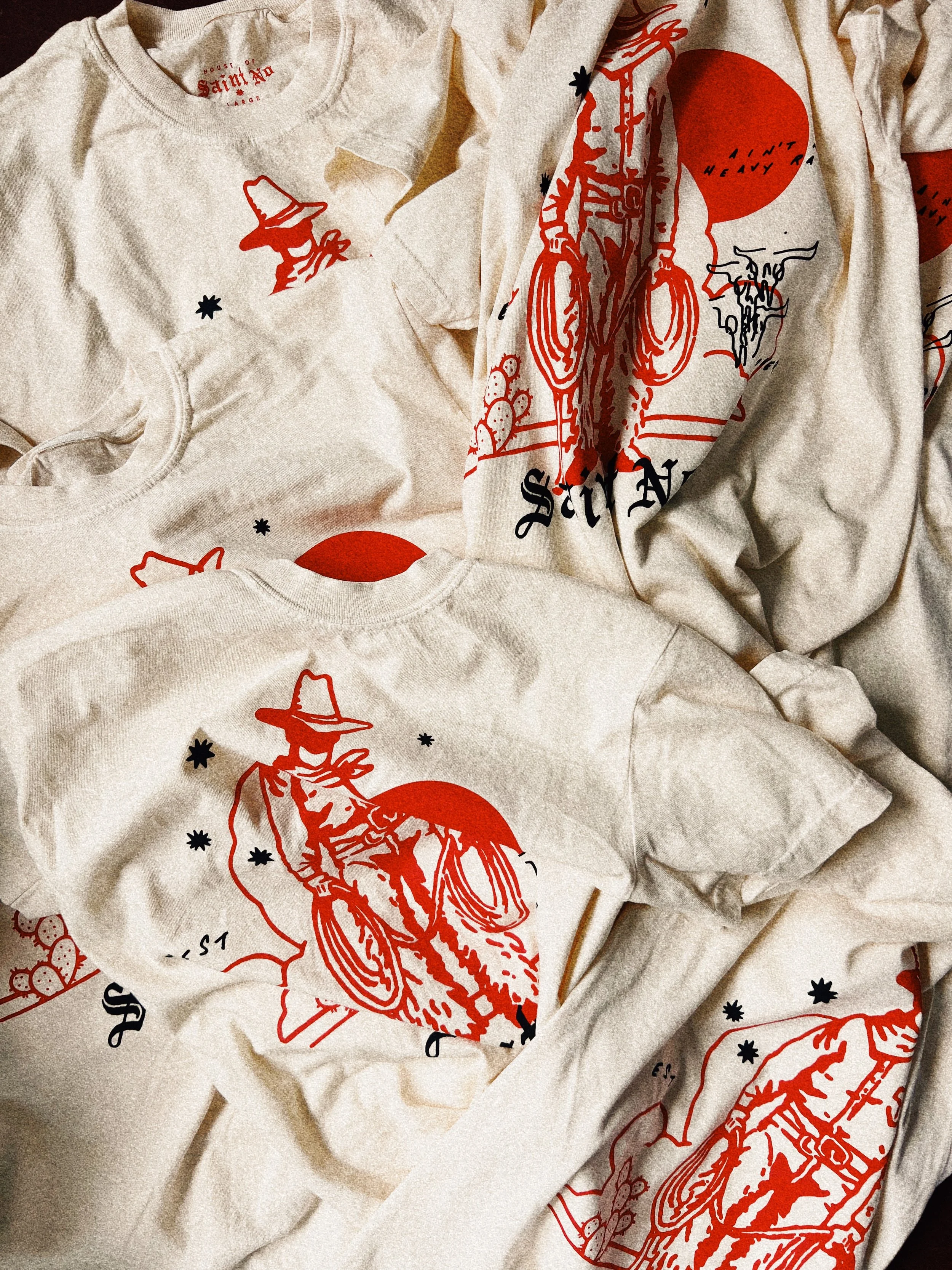 HOUSE OF SAINT NOBuilt on the art and vision of Saint No in celebration of the raw, untamed spirit of the West. House Of Saint No, embodies strength, love, and individuality. Created for the Wild-Hearted—those who embrace their power and stand proudly in their truth. House of Saint No is a statement, a connection, and a celebration of those who take no shit and live life on their own terms.